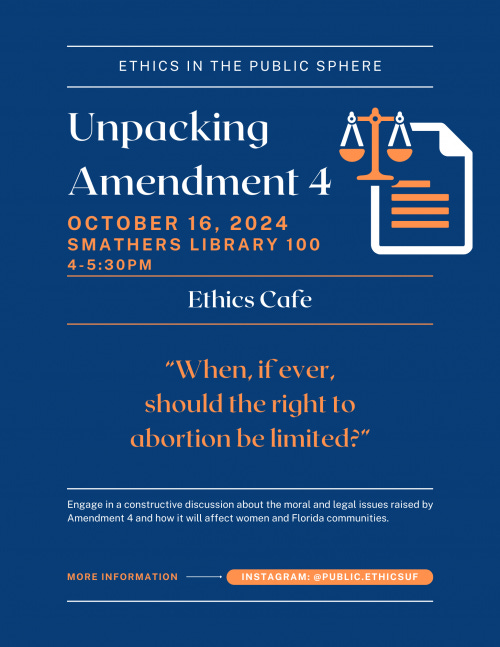Interested in learning about Amendment 4, which would repeal Florida’s 6-week abortion ban? Join a constructive, lively conversation sponsored by Ethics in the Public Sphere.