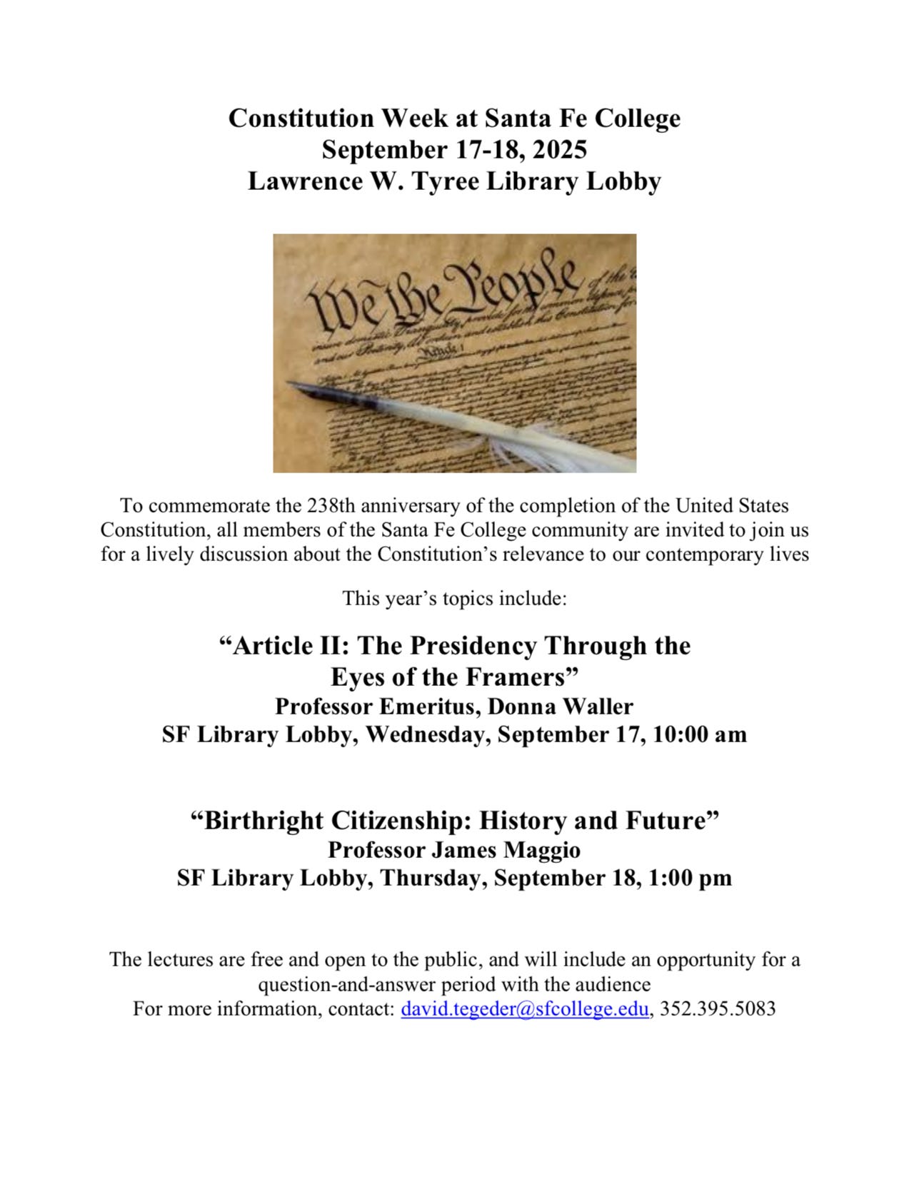 “Article II: The Presidency Through the Eyes of the Framers” – Professor Emeritus Donna Waller (Wed, Sept 17, 10:00 am)