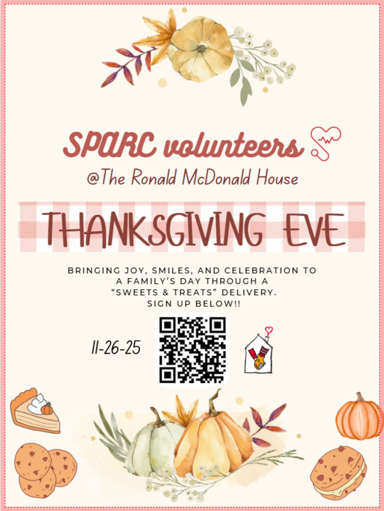 Spend your Thanksgiving Eve spreading kindness! SPARC will be delivering “Sweets & Treats” to brighten the day of families staying at the Ronald McDonald House.
