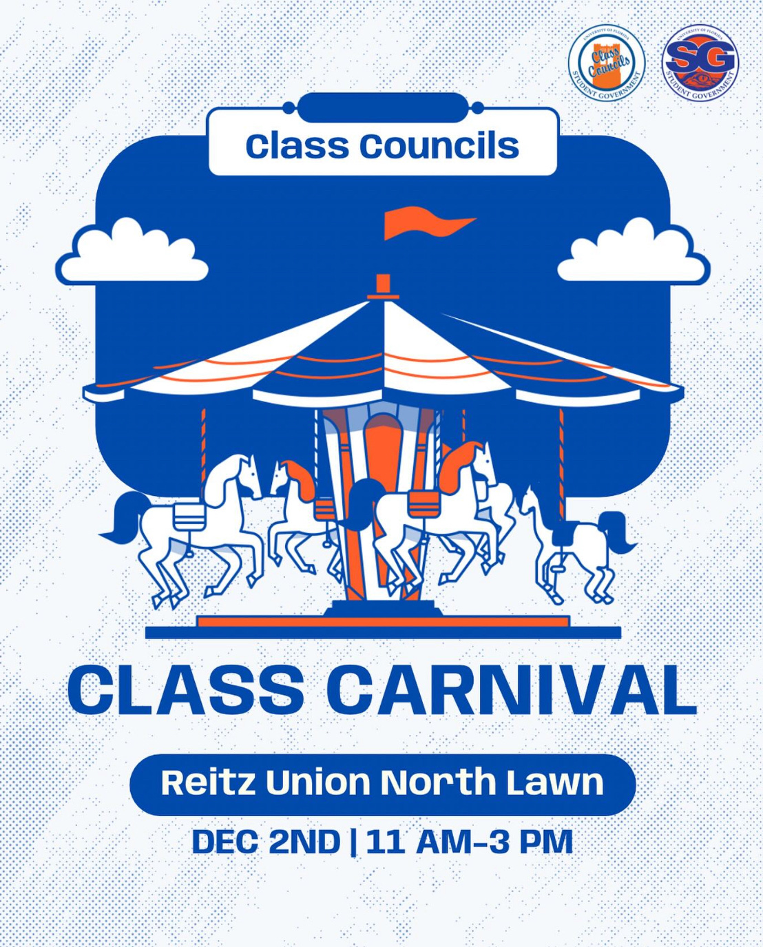 Class Carnival is happening Tuesday, December 2nd, 11AM-3PM on the Reitz Union North Lawn.
