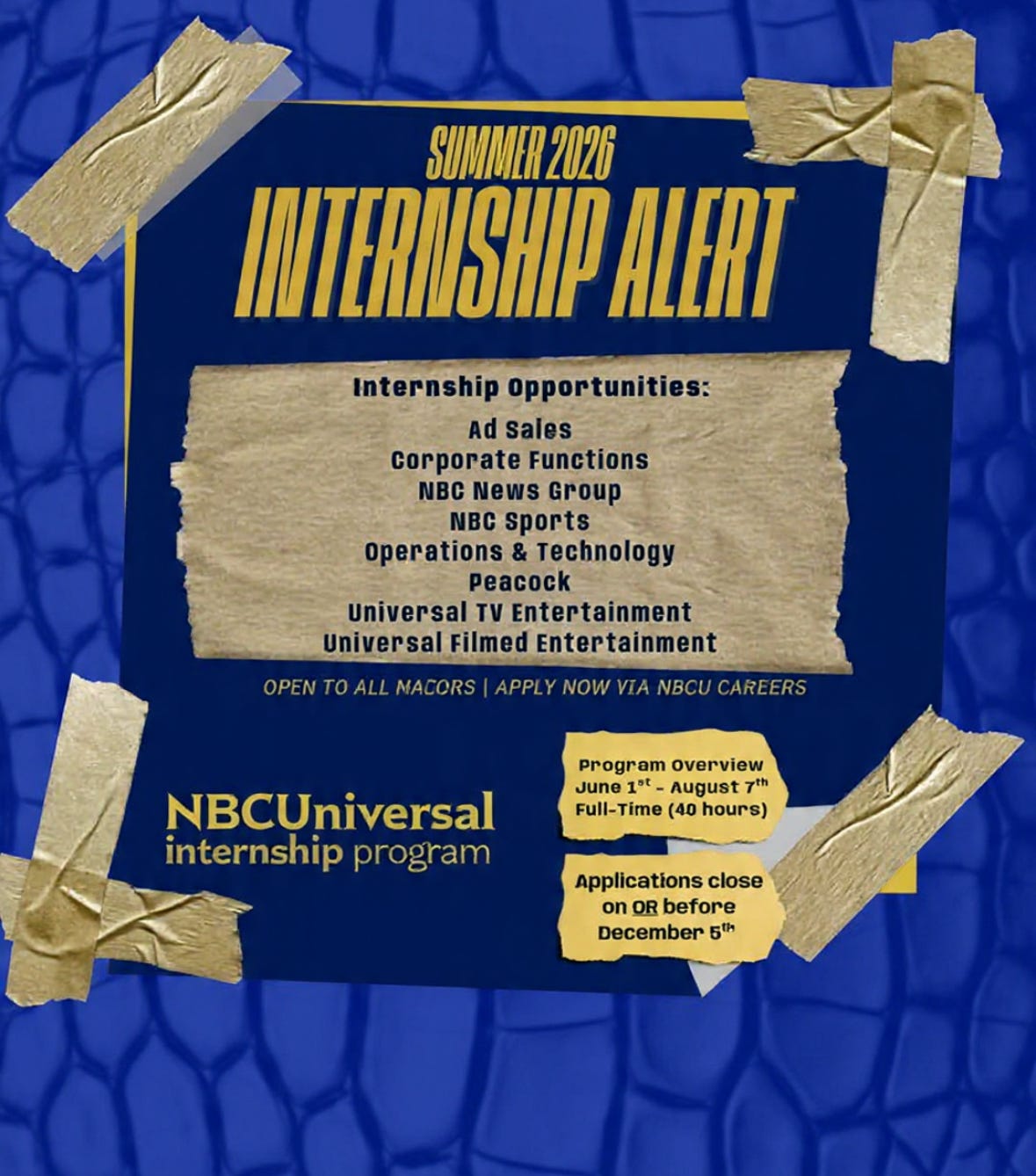 NBCUniversal’s Summer 2026 internships dropped, and opportunities span everything from Ad Sales to Sports to Entertainment.